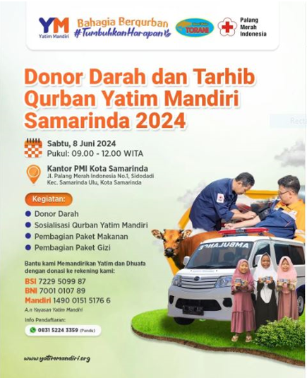 06 Juni 2024 : Agenda Donor Darah dan Tarhib Qurban Yatim Mandiri Samarinda
